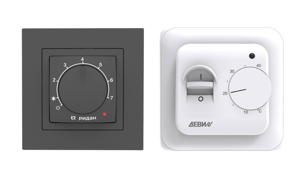 - с выносным датчиком температуры пола на проводе — контролирует только температуру пола (Ридан Twist, ДЕВИ Base);