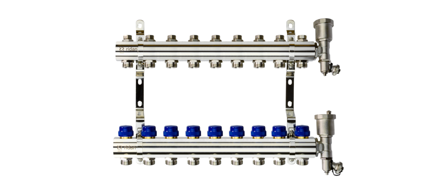 В продуктовой линейке Ридан коллекторные группы представлены широким перечнем, среди которых: коллекторы с заглушками для радиаторного отопления, расходомерами для теплого пола и квартирных систем.