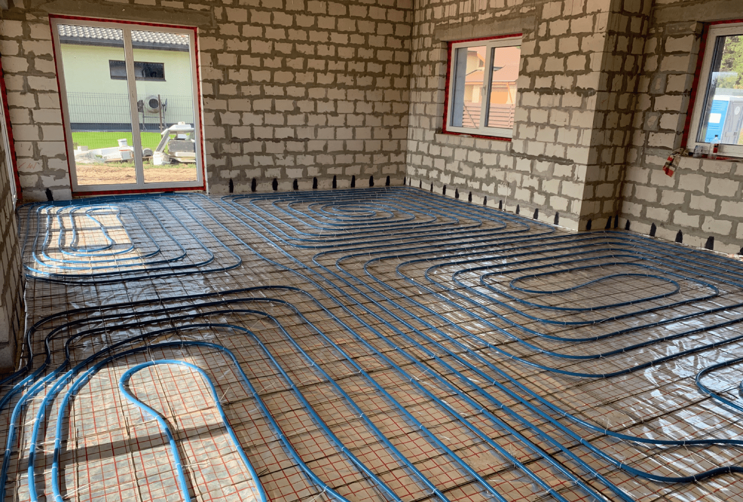 После монтажа трубопроводов и проверки системы на герметичность (опрессовка давлением 6 бар в течение 24 часов) выполняется заливка цементно-песчаной стяжки. Необходимо упомянуть, что к стяжке также предъявляются определенные требования, среди которых: